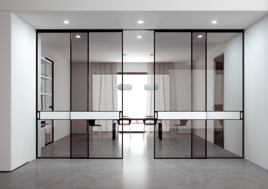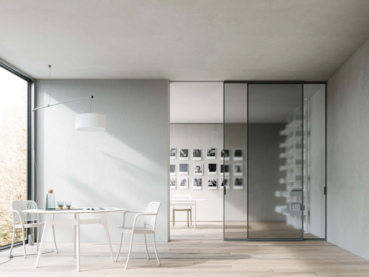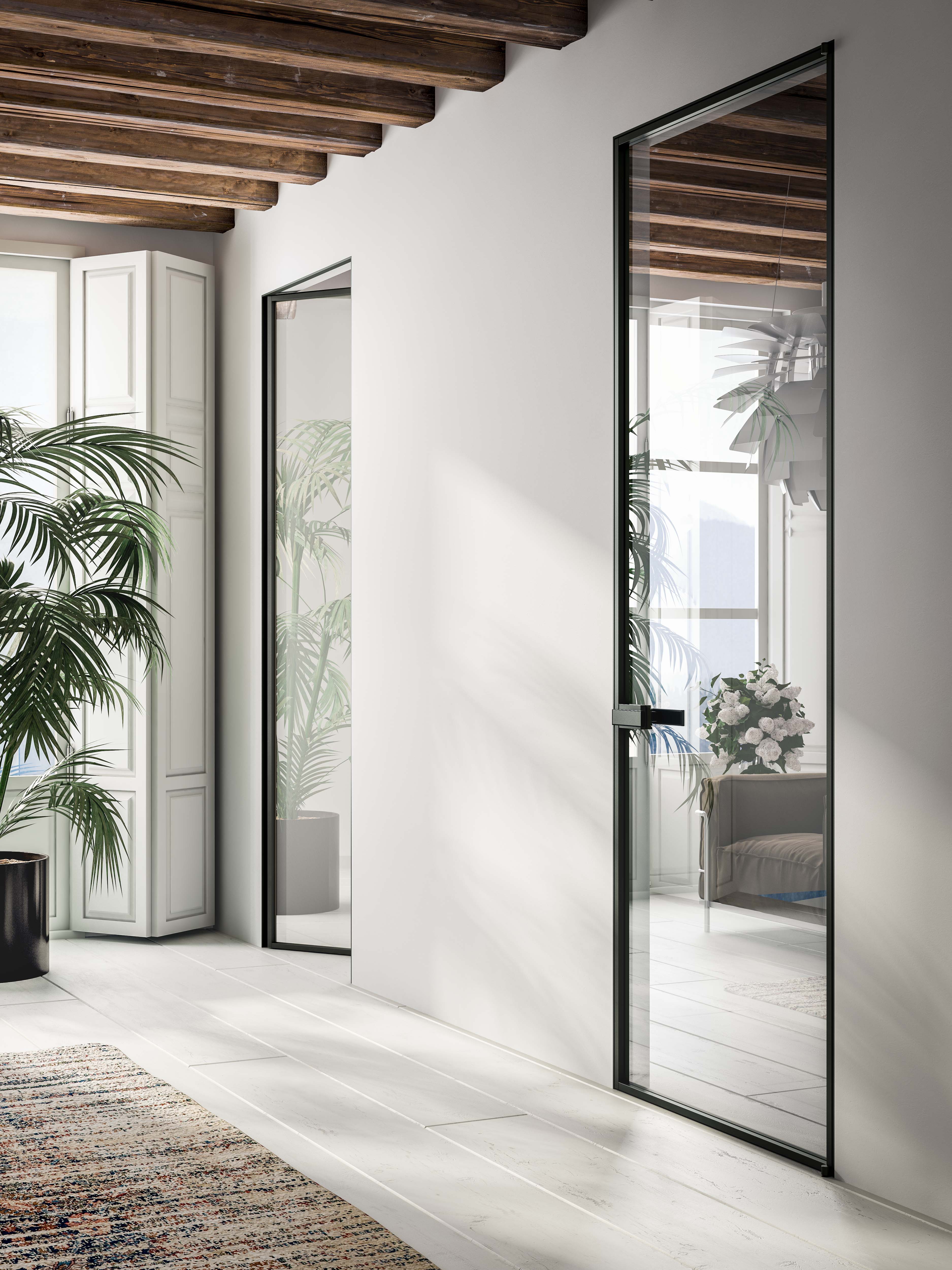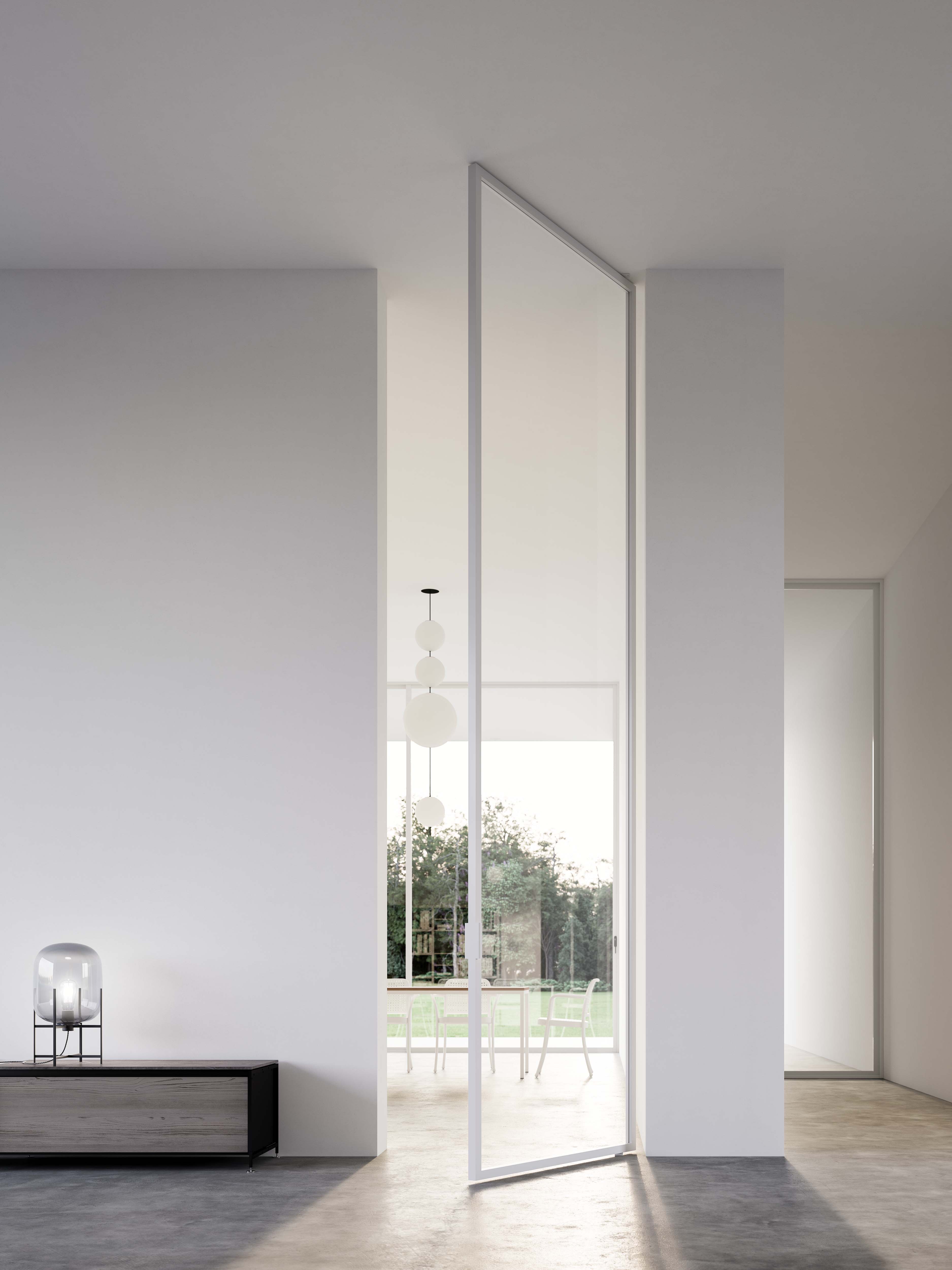 Alluminio e vetro elementi altamente tecnologici che uniti danno vita a porte in alluminio-vetro che non sono semplice oggetto di arredamento, ma porte che completano l'ambiente diventando parte di esso.
