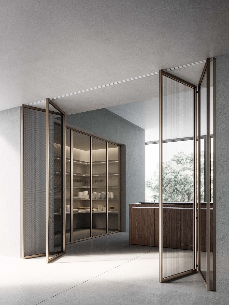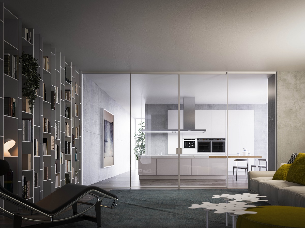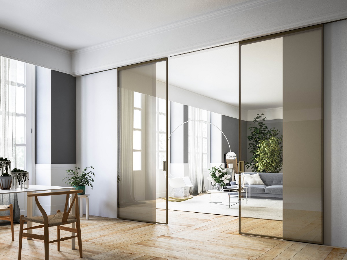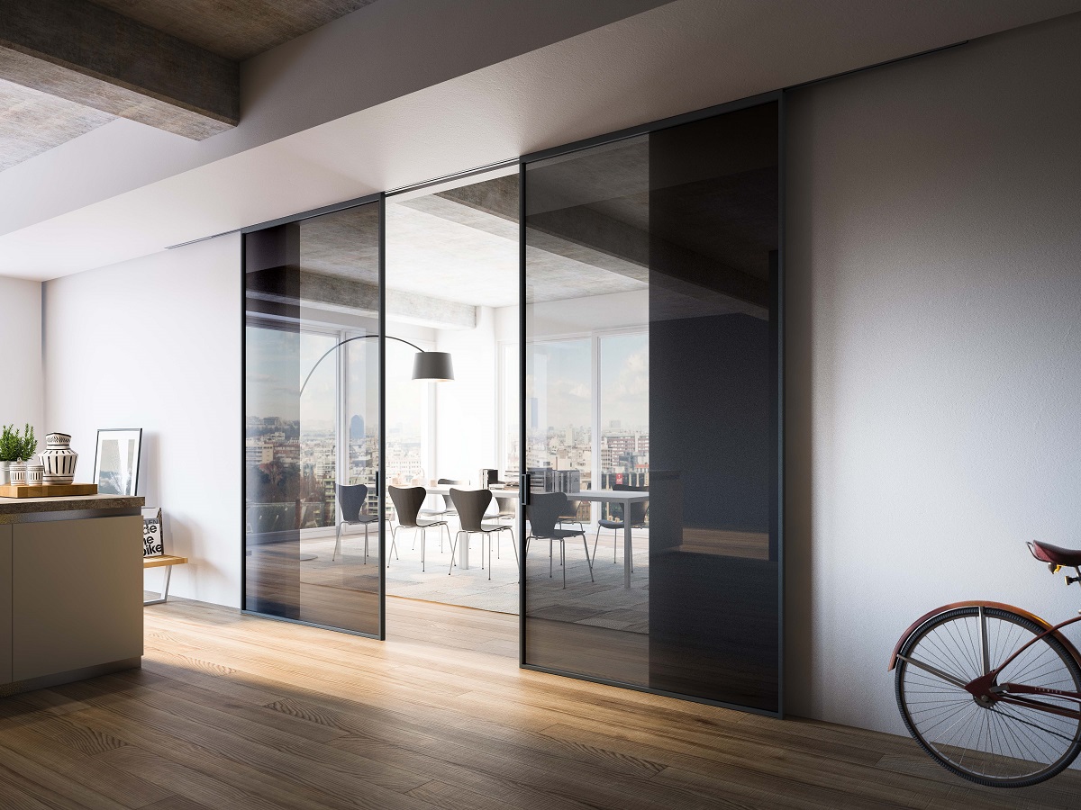 Alluminio e vetro elementi altamente tecnologici che uniti danno vita a porte in alluminio-vetro che non sono semplice oggetto di arredamento, ma porte che completano l'ambiente diventando parte di esso.