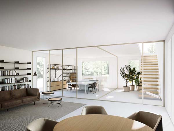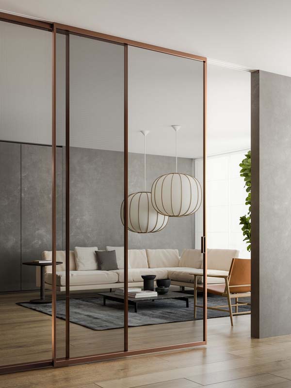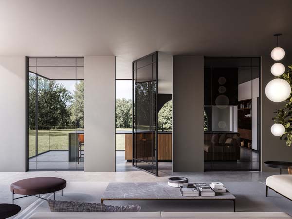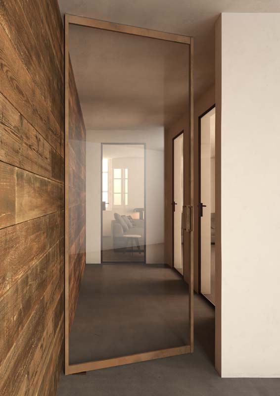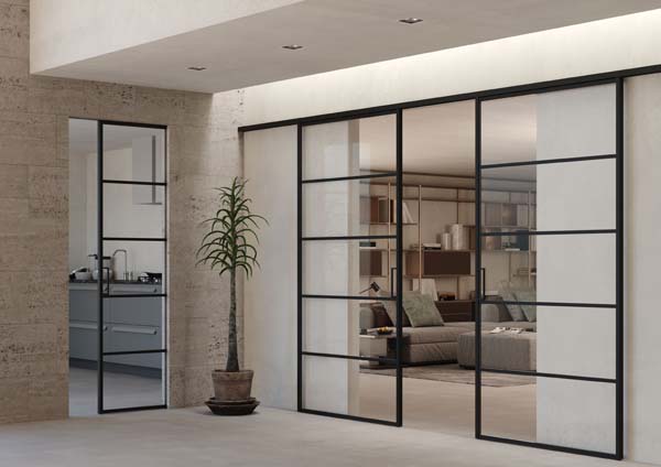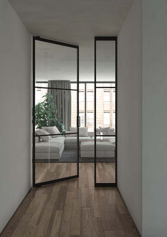 Alluminio e vetro elementi altamente tecnologici che uniti danno vita a porte in alluminio-vetro che non sono semplice oggetto di arredamento, ma porte che completano l'ambiente diventando parte di esso.