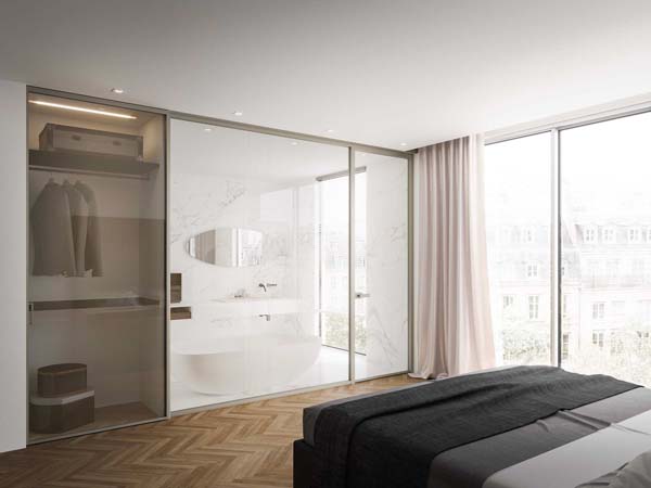 ✔️Anche nel caso delle porte tutto vetro i sistemi di apertura sono molteplici: dal sistema battente Rasomuro al tecnologico binario applicato alla parete del modello Logika.